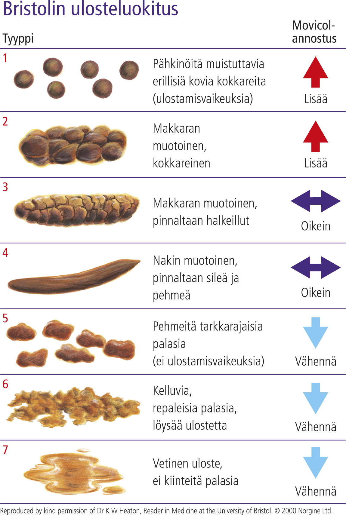 MOVICOL ® Junior Plain annos vaihtelee lapsen iän ja hoitovasteen mukaan. Muuta annostelua Bristolin taulukon mukaan.